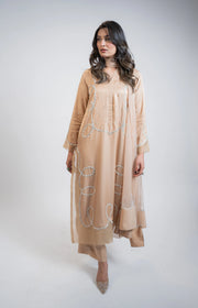 Step into timeless elegance with this Honey Brown Pure Tussel Silk 3PC set, designed to bring effortless sophistication to your festive wardrobe. Crafted from rich pure tussel silk, this luxurious ensemble is beautifully adorned with delicate pearl, sequin, and stone embellishments that add a subtle shimmer and refined charm
