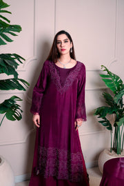 Elevate your festive and formal look with this plum silk long shirt, beautifully adorned with elegant Swarovski embellishment. The rich silk fabric combined with subtle sparkle creates a luxurious and refined appearance, perfect for special occasions.